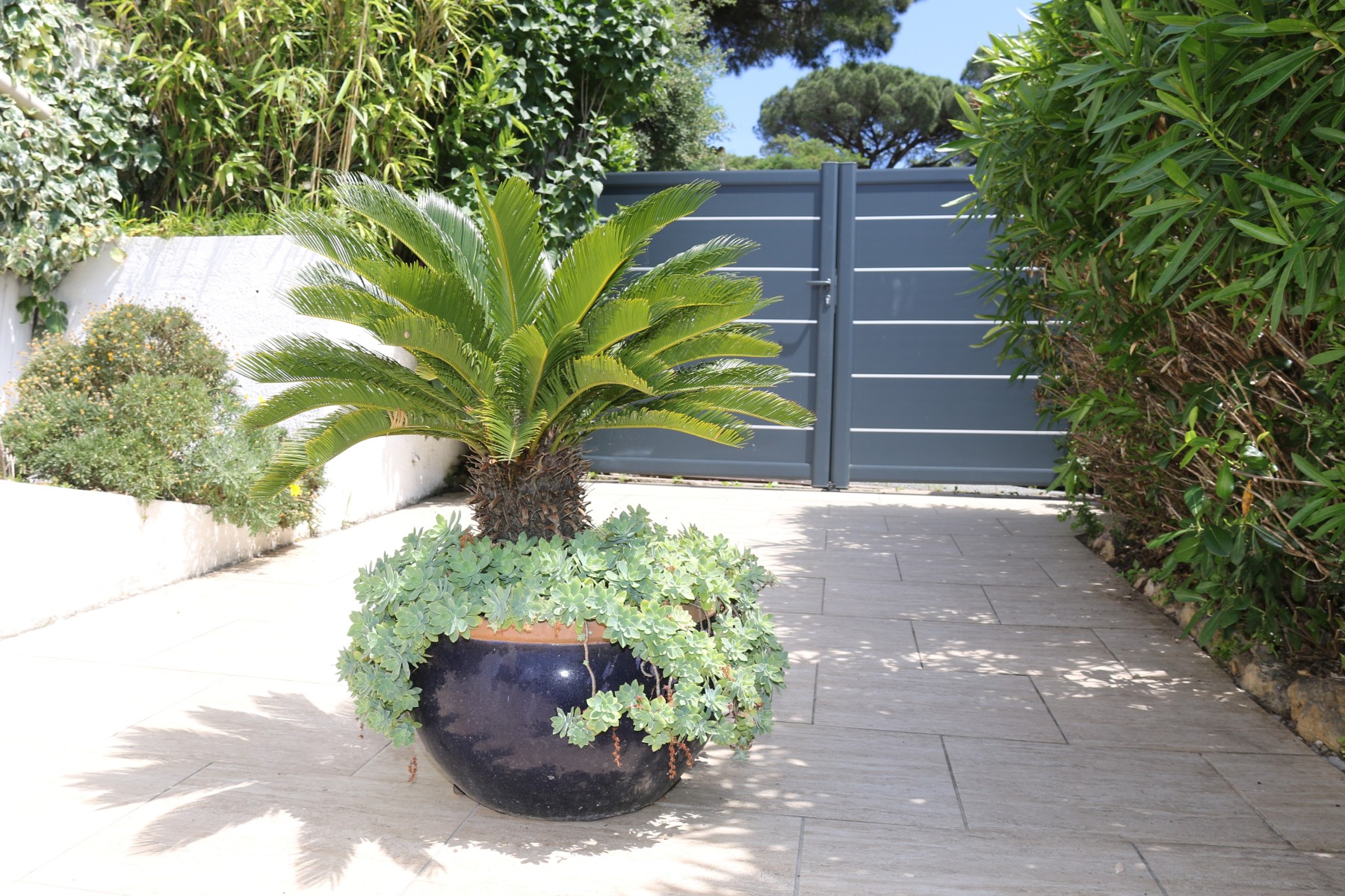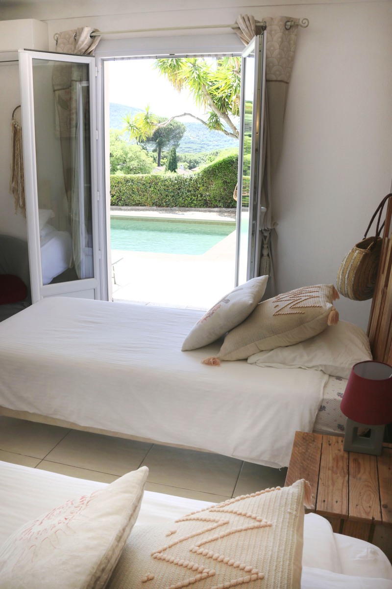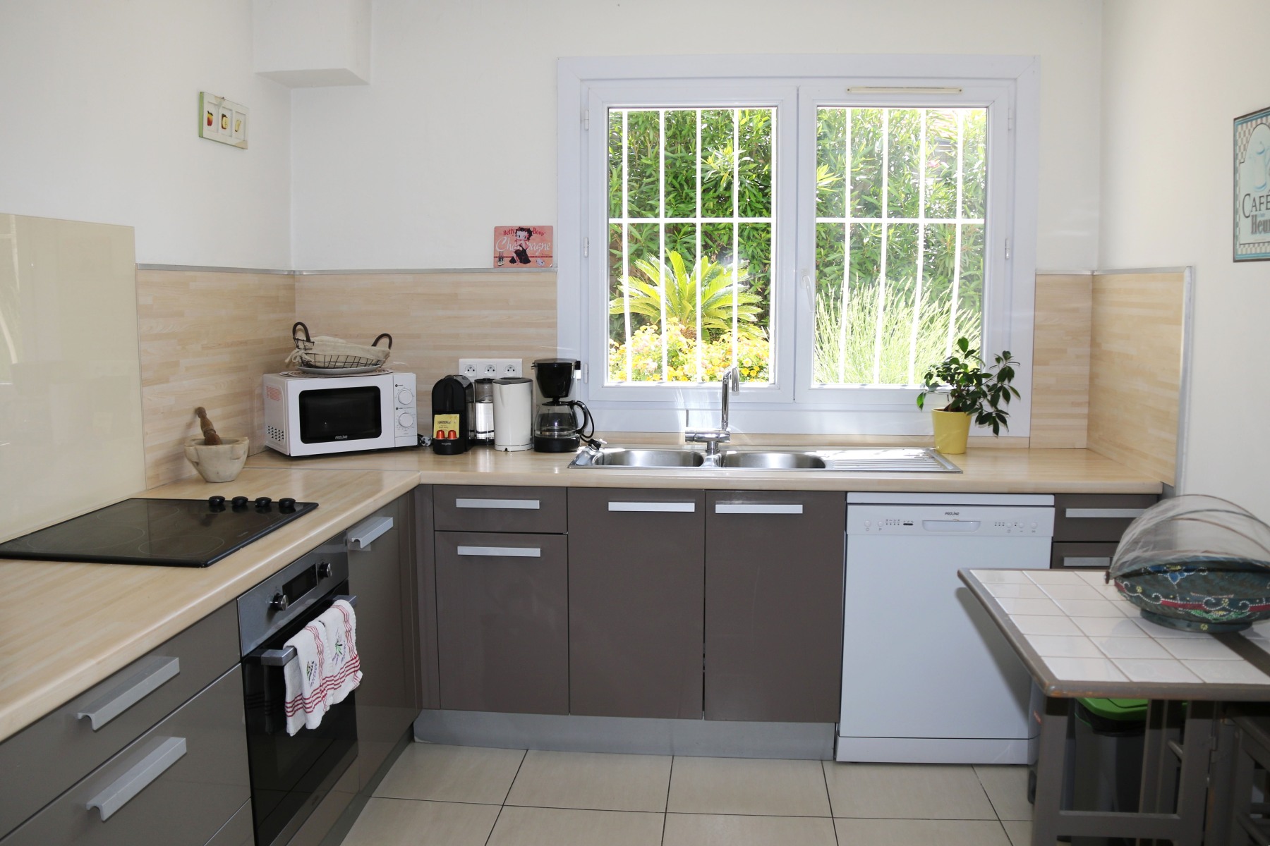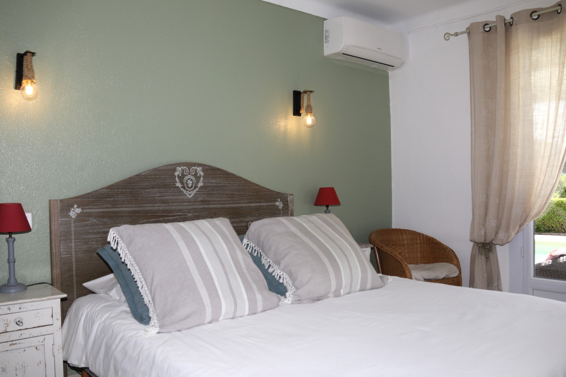 Le salon et les chambres donnent directement sur la piscine avec accès direct. Le Jardin est aménagé avec barbecue , table et chaises de jardin et parasol.