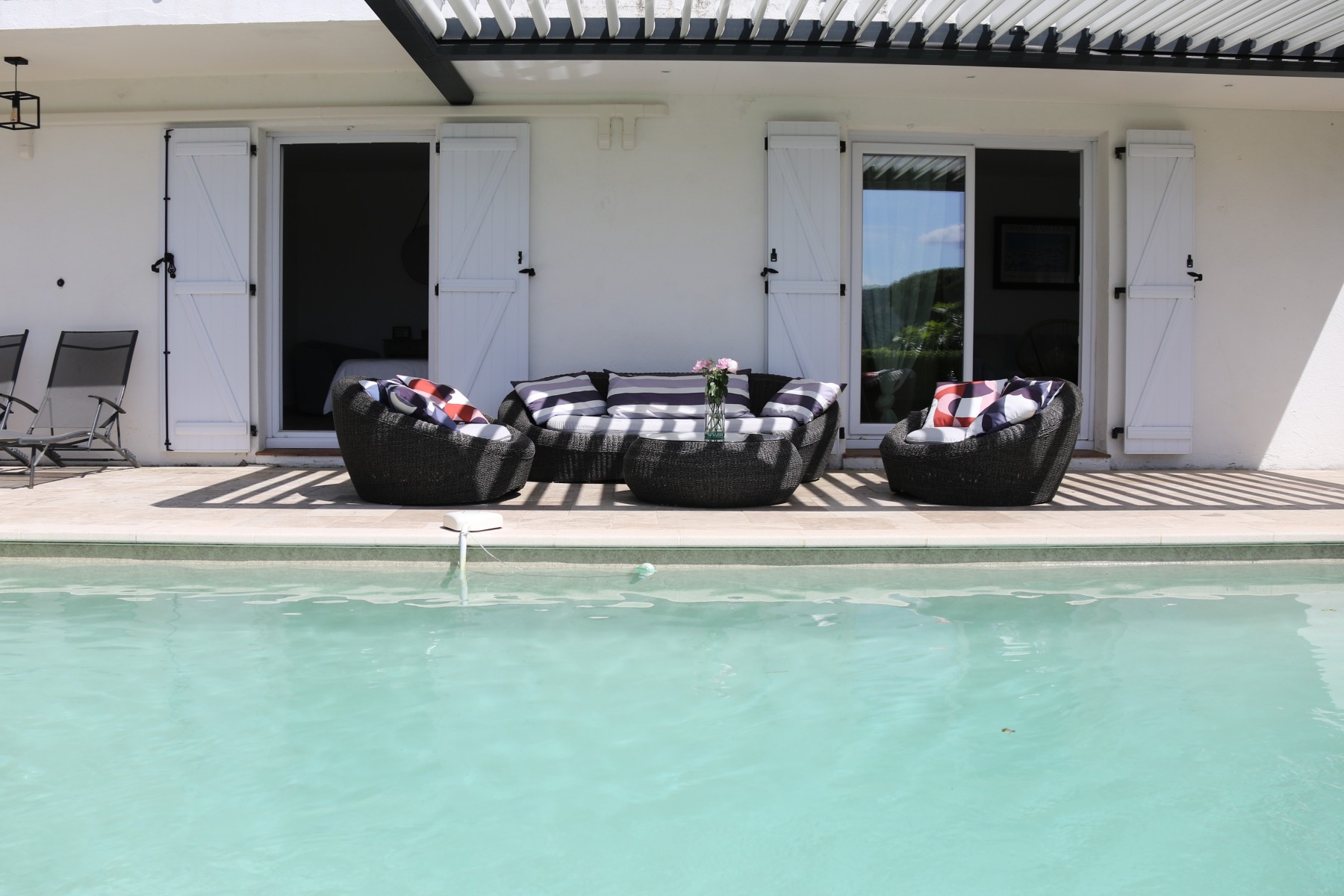 Au bord de la piscine vous trouverez un salon de jardin ainsi que des transats.